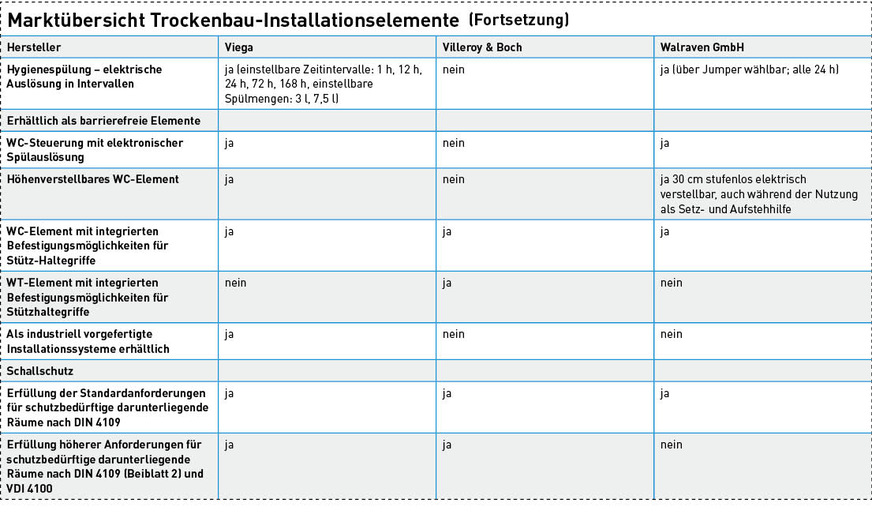 Danach ging es in der Entwicklung etappenweise weiter. Bald danach gab es für den UP-Spülkasten ein Montagegestell für den Nassbau. Zwar musste der Montagerahmen vom Installateur zusammengebaut werden, doch war es eine Vereinfachung für den Nassbau. Es folgte ein UP-Spülkasten in einem vorkonfektionierten Montageelement. Das war quasi die Geburtsstunde des Trockenbaus, der aber Anfang der 1970er nur selten auf Deutschlands Baustellen anzutreffen war. Vereinzelt kamen selbsttragende Elemente für Trockenbauwände zum Einsatz, mit denen auch eine halbhohe Vorwand vor einer Massivwand erstellt werden konnte. Doch die Waage schlug immer mehr aus in Richtung „trockene Ausbaumethoden“.