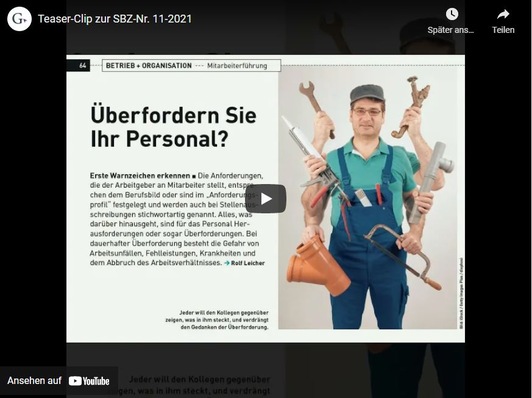 Aktuelle Meldungen © Messe Essen 17. - 20. März 2026, Messe Essen SHK+E Essen 2026: Technologien der Zukunft © Konstantin Savusia - stock.adobe.com SBZ-Podcast SBZ ruft an – Folge 7: Schwarzmarkt für Kältemittel © blende11.photo - stock.adobe.com 18.02.2026, 10–11.30 Uhr + 14–15.30 Uhr, online Thementag Heizung: Wärmepumpen, PVT-Kollektoren und §14a © www.aircon.panasonic.de Klimatechnik Panasonic Heating and Cooling Solutions verstärkt Vertriebsteam 19.12.2025 - Panasonic Heating and Cooling Solutions erweitert das Vertriebsteam im Bereich Commercial Air Conditioning mit Marcel Oligschläger. © janvier - stock.adobe.com EPBD-Novelle BWP fordert verlässliche Entwicklung der Gebäudepolitik 19.12.2025 - Der BWP warnt vor einer wachsenden Planungsunsicherheit durch eine mögliche Verschiebung der EU-Gebäuderichtlinie und plädiert dafür, am GEG festzuhalten. © Daniel Ernst - stock.adobe.com Klimaschutzziele Kälte-Klima-Förderung: Branche fordert Verlängerung über 2026 hinaus 18.12.2025 - Ein Bündnis plädiert dafür, die Förderung nach der Kälte-Klima-Richtlinie fortzuführen, um Anlagenbetreiber beim Umstieg auf alternative Kältemittel zu unterstützen. © SHK Radio SHK-Radio SHK Podcast über System C von Dimplex 18.12.2025 - Im Podcast diskutieren Markus Rupprecht und Andreas Rösing von Dimplex über die Wärmepumpenreihe System C. SBZ-Videos © Screenshot SBZ SBZ unterwegs: MC SHK im Harz Mehr als nur Benzingespräche: auf Tour mit dem SHK-Motorradclub 2024 © SBZ / Screenshot ANZEIGE Hart, aber Sanitär – die schräge Bad-Comedy © SBZ SBZ unterwegs: Geberit 2022 Zwei Bereiche, eine Sanitär-Systemwelt © SBZ SBZ unterwegs Neues von Daikin 2022 SBZ unterwegs Neues von Stiebel Eltron 2022 © SBZ / Gentner SBZ Ausgabe-Nr. 13-2021 Flächenheizung, Lüftung und Rückstauschutz © SBZ / Gentner-Verlag SBZ-Ausgabe 12-2021 Teaser-Clip: Bei nervigen Kunden Ruhe bewahren! SBZ-Ausgabe 11-2021 Teaser-Clip: Mitarbeiter nicht verheizen! SBZ-Ausgabe 10-2021 Teaser-Clip: Gegen falsche Onlinebewertungen vorgehen © Gentner Verlag / SBZ Hansa, Teil 1 SBZ unterwegs: Armatur mit Schwallstrahl in Diamantoptik im Video Alle SBZ-Videos Weitere aktuelle Meldungen © bad&heizung Vorstandswechsel bad&heizung: Martinez tritt Nachfolge von Schlattmann an 17.12.2025 - Olivier Martinez (52) übernimmt zum 1.1.2026 den operativen Vorstand der bad&heizung AG. Damit tritt er planmäßig die Nachfolge von Dirk Schlattmann an. © Gina Sanders - stock.adobe.com Gebäudestandard VDMA fordert: keine Abstriche bei Barrierefreiheit im Gebäudetyp E 17.12.2025 - Bauprozesse sollen mit dem Gebäudetyp E vereinfacht werden. Die VDMA-Fachverbände warnen vor Einsparungen bei Lüftung und Aufzügen, die Gesundheit und Barrierefreiheit gefährden könnten. © Adobe Stock / New Africa 26.02.2026, 10 - 11.30 Uhr, online Thementag Baddesign: barrierefrei gestalten 17.12.2025 - Barrierefreie Badgestaltung ohne Designkompromisse: Das Webinar zeigt, wie Normen einfach umgesetzt und moderne Wandverkleidungssysteme zur optischen Aufwertung und Kundenbegeisterung beitragen. © perma-trade 13.01.2026, ab 17 Uhr, online perma-talk: „Azubis finden – Fachkräfte binden“ 16.12.2025 - Nachdem das neue Online-Format „perma-talk“ im letzten Jahr erfolgreich an den Start gegangen ist, folgt nun die nächste Folge zum Thema Ausbildung. © Christian - stock.adobe.com Arbeitshilfen Praktische Hilfsmittel für Handwerker 16.12.2025 - Leitfäden, Infoblätter und Serviceangebote – nützliche Arbeitshilfen für den SHK-Alltag. Neu mit dabei: Anleitung zur Dimensionierung von Wärmepumpen, Leitfaden zu Gebäudeautomation und Energiewende und mehr. © Fränkische Abgesteckt Systeme für SHK-Profis: strömungsoptimiert, leicht, sensorbasiert 16.12.2025 - Smartphone-Wärmebildkamera, Armaturenserie, Mehrschichtverbundrohrsystem, freistehende Badewanne, Spender mit Cloud-Anbindung. Zum Meldungsarchiv Aus dem aktuellen Heft © Bild: Niko Troebst - stock.adobe.com Energiewende: Wo steht die Gebäudetechnik und wie geht es weiter? 17.12.2025 - Wie denkt die Branche der Gebäudetechnik über die Energiewende? Eine Umfrage gibt tiefe Einblicke bei Herstellern, Großhandel und Handwerk. Gerade vor dem Hintergrund der aktuellen GEG-Diskussionen auf politischer Ebene zeigt sich ein spannendes Bild. Der Artikel basiert auf einer Befragung des Studiengangs „BWL – Branchenhandel Bau, Haustechnik, Elektro“ der DHBW Mosbach zur Energiewende, welche Anfang 2025 durchgeführt wurde. Prof. Dr. Alexander Neumann fasst die Ergebnisse zusammen. © Bild: Kermi Effiziente Heiztechnik trifft schlanken Bodenaufbau 17.12.2025 - Mit dem Umzug in die Erdgeschosswohnung ihres Zweifamilienhauses erfüllte sich ein Ehepaar den Wunsch nach einem altersgerechten, barrierearmen Wohnumfeld. Zur Komfortsteigerung wurden die Räumlichkeiten saniert und modernisiert – inklusive des Einbaus neuer Heizkörper sowie der Installation einer Fußbodenheizung. Die aufeinander abgestimmten Produkte des Herstellers Kermi wurden für die Wärmeübertragung verwendet. © Bild: © Edition Michael Fischer Sandra Hunke: Schluss mit alten Vorurteilen. Für mehr starke Frauen im Handwerk. 17.12.2025 - Sandra Hunkes „Ich zeig’ euch, wo der Hammer hängt!“ ist weniger ein Handwerksratgeber als ein energischer Weckruf – und eine erstaunlich persönliche Abrechnung mit verrosteten Rollenbildern. Die SHK-Anlagenmechanikerin, die nebenbei modelt, moderiert und auf Social Media eine enorme Reichweite hat... Wie man mit Reklamationen besser umgeht 17.12.2025 - Der Kunden ist König, er weiß das und nutzt die Situation für sich aus. Was nicht gefällt, wird als Reklamation definiert. Er verlangt immer mehr und der Handwerker sagt meist zu, damit der den Kunden nicht verliert. Wie soll man sich dem Kunden gegenüber verhalten, wenn es sich um eine unberechtigte Reklamation handelt? Rolf Leicher weiß es. © Bild: Kauderer So klappt’s mit Kunden und beteil