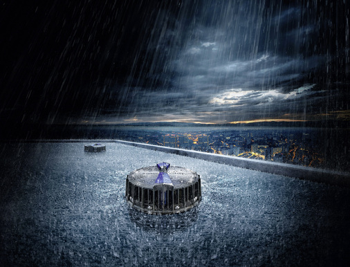 Für die hydraulische Dimensionierung (geodätische Druckhöhe und Druckverluste aus Rohrreibung und Einzelwiderständen) standen verschiedene Höhen zwischen 12,8 m und 31,2 m zwischen der jeweiligen Entwässerungsebene und den Grundleitungsanschlüssen zur Verfügung. Die projektspezifische Berechnung für die zu entwässernde, ca. 20 000 m² große Dachfläche ergab die Anzahl von insgesamt 140 Dachwassereinläufen (davon 65 Einläufe für die Notentwässerung) mit Ablaufleistungen von 4,7 l/s bis 12 l/s ( Bild 1 ). Eine EPDM-Flanschdichtung gewährleistet den Anschluss an die Flachdachabdichtung. Ablaufkörper und Rohranschluss bestehen aus PE, so dass der Anschluss an die Entwässerungsleitungen ohne Werkstoffübergang erfolgt.