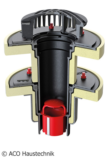 Flachdachablauf bis R120: Aco Haustechnik präsentierte bei der ISH 2019 den neuen Flachdach-Ablauf Passavant aus Gusseisen für die Freispiegel-Entwässerung. Er erfüllt die Anforderungen der Feuerwiderstandsklassen R30 bis R120 schon bei einer Mindeststärke des Flachdachs von 150 mm. In Verbindung mit der Brandschutz-Kartusche sorgt der Ablauf für integrierten Brandschutz, egal welcher Rohrleitungs-Werkstoff angeschlossen wird (Kunststoff, Stahl oder Gusseisen). Wird der Flachdach-Ablauf in ein gedämmtes Dach eingebaut und ist Brandschutz gefordert, kommt der Brandschutz-Isolierkörper Fit-in zum Einsatz, der ohne zusätzlichen Hitzeschild auskommt. Das modulare Sortiment ermöglicht eine große Variabilität des Dachaufbaus: Kalt-, Warm- oder Umkehrdach mit Kiesschüttung, Oberflächen-Belag aus Platten oder begrünt. Im Press-Dichtungs-Flansch des Ablaufes kann jedes Dichtungsbahn-Material eingepresst werden. Die Roste stehen in einlegbarer und in verschraubbarer Version zur Verfügung. Eine nachträgliche Anpassung der Rosthöhe ist durch zwei Höhenverstellringe (Bereiche 25 bis 40 mm und 45 bis 60 mm) möglich. Zur Auswahl stehen 2 Oberteile und 2 Rostsortimente für insgesamt 6 Ablauf-Varianten (DN 70/100/125/150 mit 90° und DN 70/100 mit 1,5° Stutzenneigung.
