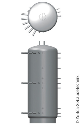 Die Zortström MH1000 Energiezentrale wurde speziell für Gebäude bis 16 kW Heizlast konzipiert. Mit ihr lässt sich die Einspeisung aus verschiedenen Wärmequellen in Kombination mit Wärmepumpen koordinieren und verteilen. Die exakte Temperaturtrennung im Speicher sorgt dabei für eine hohe Systemeffizienz. Jeder Wärmeerzeuger und jeder Verbraucher kann hydraulisch entkoppelt sowie nach Temperaturen getrennt verbunden werden. Die Energiezentrale verfügt über vier Temperaturstufen sowie zwei interne Puffer und wird komplett vorkonfektioniert geliefert. Über koppelbare Frischwasser- und Heizkreismodule lässt sich zudem ein ganzheitliches energetisches Versorgungssystem aufbauen.