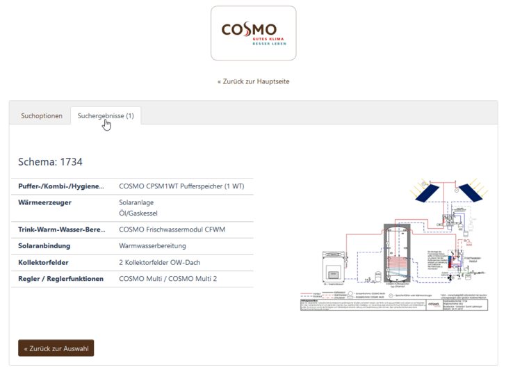 Die Hydraulikdatenbank liefert die jeweils passende Antwort. Zu finden ist der kostenfreie Service unter cosmo-info.de/hydraulikdatenbank . Hier kann der Heizungsfachmann alle gängigen Schemen mit Produkten von COSMO aufrufen und anschließend die Anlage sicher und schnell bauen.