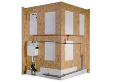 Gleichzeitig setzt die Komplettlösung auf hochwertige Materialien und Installationen. Die Wandelemente aus stabilen OSB-Platten verfügen über ausreichend Raum für Leitungen und Befestigungen. Die Innenwände aus weißen, 8 mm starken Kunststoff-Platten sind wahlweise auch mit Design-Oberflächen zu haben. 4 LED-Strahler fügen sich dezent in die Decke ein. Den Boden der „Individual“-Bäder bildet eine wasserdichte „Wanne“ aus Vollkunststoff (PVC) mit rundum 10 cm hoher Aufkantung. Der Vinylboden in Fliesenoptik sorgt für wasserfeste Laufbereiche.