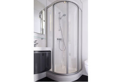 Selbst bei geringem Platzangebot lässt sich ein Sanitärbereich mit Wohlfühl-Atmosphäre einrichten: Wahlweise bietet das „Individual“-Angebot eine Viertelkreis-Duschwanne (80x80 cm) aus Acryl oder eine bodengleiche Duschlösung. Echtglas-Schiebetüren, Waschtisch sowie wandhängendes WC aus Porzellan, ein „unsichtbarer“ Spülkasten und die Auswahl an Design-Heizkörpern sorgen für viel Gestaltungs-Spielraum.