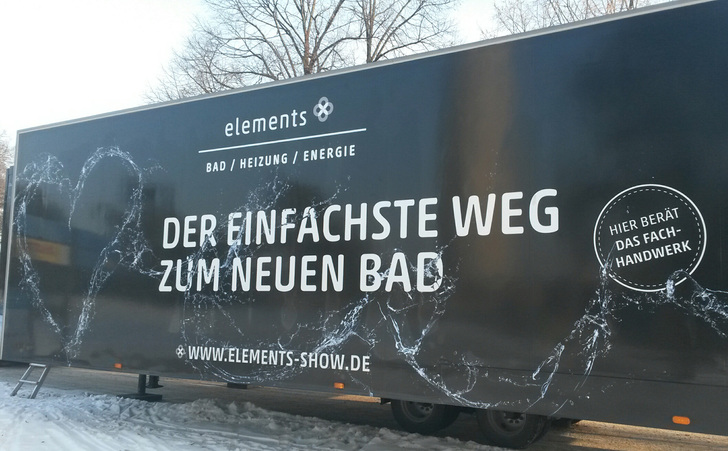 Neben einer umfassenden Online-Kampagne, Print-Anzeigen und TV-Werbung bildet der 14 Meter lange ausfahrbare Auflieger eine weitere Werbe-Plattform für das Ausstellungskonzept – und damit auch für Deutschlands Fachhandwerker, die im Zusammenspiel mit dem Badberater eine passende Antwort auf Internethandel und Baumärkte liefern. Auf einer Breite von 7,50 m präsentiert der Showtruck neue Badprodukte, von der Armatur über die Duschabtrennung bis zur freistehenden Badewanne.