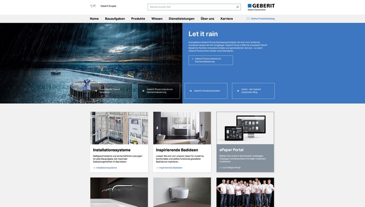 Geberit hat eine umfangreiche Nutzeranalyse über alle Zielgruppen vorgenommen. Zweck: Das Online-Angebot zu vereinfachen und übersichtlicher zu strukturieren. Nutzer finden nun intuitiv und schnell die Bereiche, die für sie besonders relevant sind.