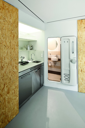 Ein Wohnkonzept des Grohe-Wettbewerbs „bad*future“ wurde in Berlin realisiert. Ziel war es, wenig Raum in Bad und Küche möglichst funktional zu nutzen - ohne das Design zu vernachlässigen.