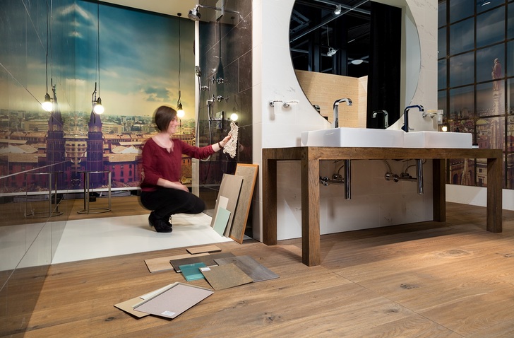 Christian Wadsack (Innenarchitekt) und Jörg Reiff (stellvertretender Leiter Hansgrohe Aquademie) zeigen planerische Badlösungen und geben Anregungen, wie das persönliche Badezimmer für die Zukunft gestaltet sein sollte.