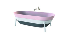 Pure, filigrane Badewannen und Waschtische werden auf innovative Art im Raum interpretiert: fantasievoll, edel und funktional. Dafür setzen Werner Aisslinger und Tina Bunyaprasit bei ihren Gestaltungs-Konzepten bewusst auf das Spiel mit Mehrfarbigkeit und markanten Rahmenstrukturen. Gestaltung und Funktionalität der Produkte zeigen auch, dass sich Sanitärobjekt und Möbel annähern.