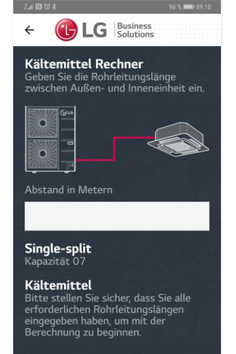 Als weitere nützliche Funktion beinhaltet die App einen Kältemittel-Rechner , der die Servicetechniker im Praxiseinsatz unterstützt. Dieser erleichtert Bestimmung des Kältemittelfüllstands nach der Installation oder einer Reparatur der Anlage.