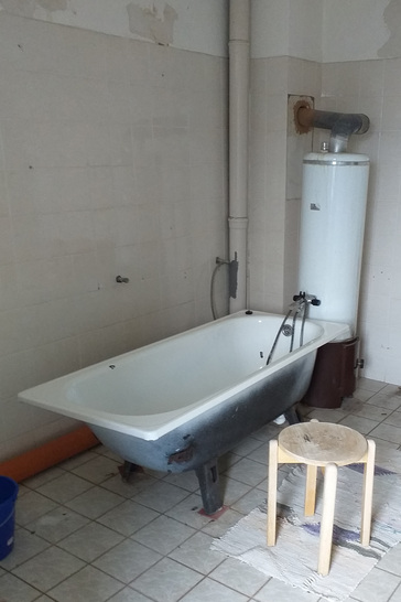 In der Altmark (Sachsen-Anhalt) findet man noch solche Schätzchen. Während man mit dem Badeofen das Wasser erwärmt, wird auch der Raum schön warm.