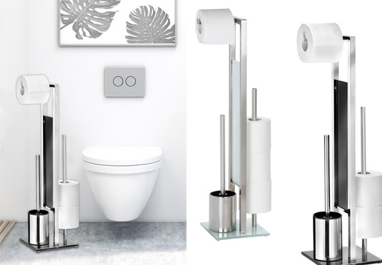 Ein gepflegtes Bad oder Gäste-WC sollte über eine WC-Bürste, einen Rollenhalter und einen Ersatz-Rollen-Halter verfügen. Die Stand-WC-Garnitur Rivalta von Wenko bietet eine praktische und zugleich schicke 3-in-1-Kombination, die auch in kleinen WC-Räumen bestens zur Geltung kommt und einen unkomplizierten Gebrauch ermöglicht.