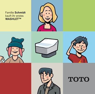 Mit einem liebevollen Blick in deutsche Badezimmer beantwortet das von TOTO gestaltete Buch im Comic-Stil "Familie Schmidt kauft ihr erstes WASHLET" alle Fragen rund um das Thema Dusch-WC.