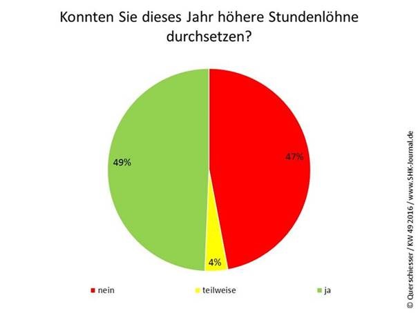 Eine Umfrage mit 387 Interviews von SHK-Handwerkern hat abgefragt, ob es den Unternehmen in 2016 möglich war, bei den Kunden höhere Löhne durchzusetzen.