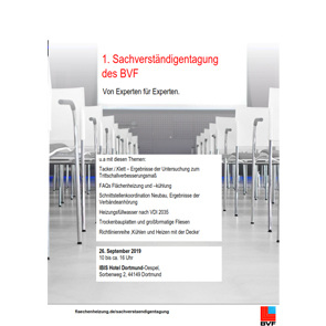 Der BVF e.V. lädt am 26. September 2019 zur 1. Sachverständigentagung nach Dortmund ein. Von 10-16 Uhr werden immer wieder gestellte Fragen und Besonderheiten der Systeme der Flächenheizung und Flächenkühlung in Boden, Wand und Decke thematisiert und aus unterschiedlichen Blickwinkeln beleuchtet.