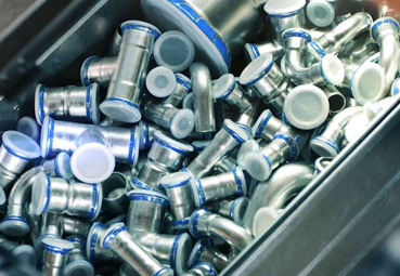 Das Mapress-Sortiment umfasst mehr als 350.000 Fittings und Rohre, rund 80 % aller Leitungs-Verbindungen für Trinkwasser und Heizung werden gepresst. Mit Edelstahl, C-Stahl, Kupfer und einer Kupfer-Nickel-Eisen-Legierung stehen 4 Werkstoffe für nahezu jeden Einsatzbereich zur Verfügung.