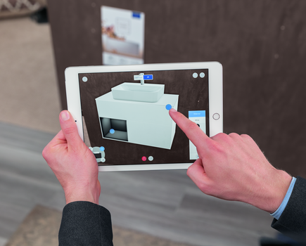 Mit der Augmented Reality App können Händler und Fachinstallateure zahlreiche Produkte aus dem Villeroy & Boch-Sortiment präsentieren — unabhängig von der Größe der Ausstellungsfläche und des ausgestellten Sortiments.