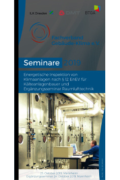 Der Fachverband Gebäude-Klima e. V. (FGK) setzt seine erfolgreiche Seminarreihe für das Kälteanlagenbauerhandwerk mit dem Titel „Energetische Inspektion von Klimaanlagen nach § 12 EnEV für Kälteanlagenbauer und Ergänzungstag Raumlufttechnik“ fort. Das Seminar findet am 23. Oktober 2019 und der Ergänzungstag am darauffolgenden 24. Oktober 2019 in Mannheim im Maritim Hotel statt. Beide Veranstaltungen richten sich an Kälteanlagenbauer, Kältetechniker, Mechatroniker für Kältetechnik, Ingenieure und Fachleute aus dem TGA-Bereich. Mitveranstalter des Seminars sind der Bundesindustrieverband Technische Gebäudeausrüstung e. V. (BTGA), die DMT GmbH sowie das renommierte Institut für Luft- und Kältetechnik (ILK) Dresden.