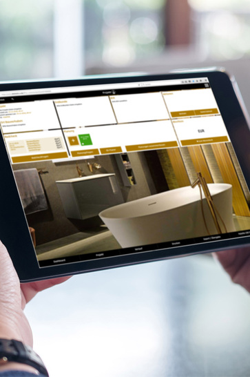 Mit „elements a“ steht ein neues Projekt-Management-Tool zur Verfügung: Die relevanten Projekt-Informationen werden auf einer Plattform gebündelt und in etwa 30 min ist ein abschlussfähiges Angebot für das neue Bad erstellt. Die Kalkulation kann jederzeit individuell angepasst werden. Bilder und Planungs-Elemente werden auf der gemeinsamen Plattform einfach ausgetauscht.