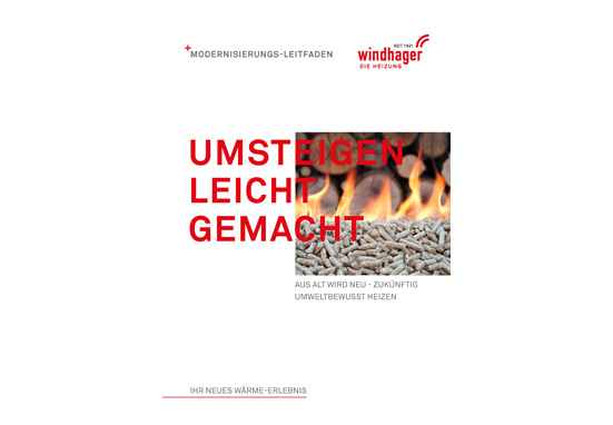 "Umsteigen leicht gemacht“ lautet der Titel der 24-seitigen Broschüre von Windhager, die dem Leser einfach und verständlich die Vorteile einer Heizungsmodernisierung erläutert und auf wichtige Fragen eingeht wie zum Beispiel: Warum sollte man auf die Brennstoffwahl achten? Welche Heizung ist die richtige für mich? Wie beantrage ich Fördermittel und was genau passiert alles beim Heizkesseltausch? Eine 10-Punkte-Checkliste, in der alle wichtigen Modernisierungs-Schritte zusammengefasst sind, rundet den Leitfaden ab.
