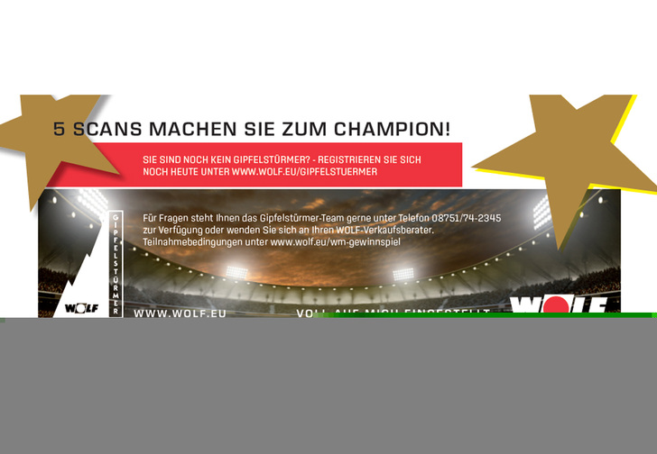 Die Installationsprämie erhalten Fachhandwerker, wenn sie den Einbau von Wolf-Geräten melden. Dazu scannen sie die Seriennummer des Produktes mit der kostenlosen Smartscan App (iOS und Android), melden damit die erfolgreiche Montage an Wolf und erhalten direkt die Bonuspunkte auf ihr Partnerkonto gutgeschrieben. Damit können die Heizungsfachmänner auch gleichzeitig die Wärmeerzeuger des Privatkunden für die kostenlose 5 Jahres Garantie registrieren. Auch wenn sie keine fünf Installationen im WM-Zeitraum durchführen, können Fachhandwerker nach der Aktion jederzeit die erzielten Bonuspunkte im Teamshop unter