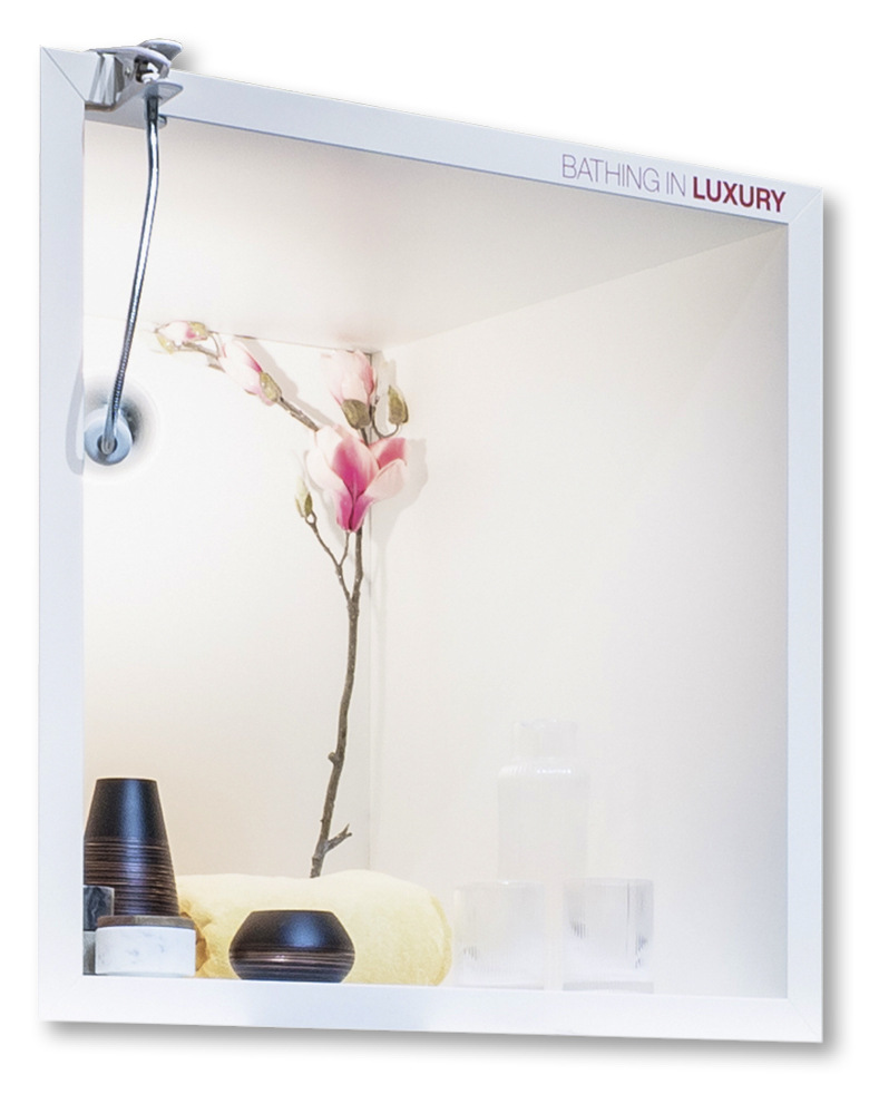 Im „Bathing in Luxury“-Badezimmer verschmilzt Luxus mit raffinierter Eleganz. Marmor und Tadelakt ohne Fliesenfugen verleihen dem Raum eine edle Anmut. Ein Plüschbadeteppich und schwere Stoffe wie Damast betonen die klassische und konservative Atmosphäre. Wertvolle Materialien, Glas und Kristall inszenieren den Raum als Statussymbol. Markante Parfumflakons und ein Rasierpinselset sind klassische Zitate und erfüllen den Raum mit exklusivem Duft. Hochwertige Armaturen und Accessoires vervollständigen dieses Badezimmer als Ort für opulentes Badevergnügen und sinnlichen Genuss.