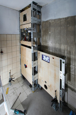 Dornemann: Der Betrieb kann mit zwei Leuten deutlich mehr Bäder im Verhältnis zur konventionellen Bauweise fertigstellen. Die ganzen Vorarbeiten im Raum selber sind im Produkt enthalten. Der Fachhandwerker kann einen Strang planen und bauen. Danach kommen die Bäder und werden an den Strang angeflanscht. Sonst erleben wir, dass der Einbau der Sanitärbauteile mit Trockenbau und Fliesenleger sich in der Regel über sechs Wochen hinzieht. Wird nur eines dieser Gewerke verschoben, muss neu geplant werden. Das dauert in der Regel weitere Wochen.