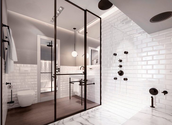 SSPS war nie als starres Konzept gedacht, daher haben wir es auch direkt in unterschiedlichen Design- und Stilwelten visualisiert. Hier haben wir unter anderem von Sieger Design gestaltete Produkte für Alape, Dornbracht, Duravit oder Aliseo eingesetzt, aber im Zentrum steht das Konzept selbst, für das Ausstattungsdetails, Materialien, Oberflächen und Farben individuell gewählt werden können. Und auch die architektonische Grundordnung lässt sich weiterdenken – in verschiedenen Maßstäben und für unterschiedliche Lebensbereiche. Und so wurde das Konzept über die Jahre weiterentwickelt: vom Hotelbad bis zum Stadtapartment.