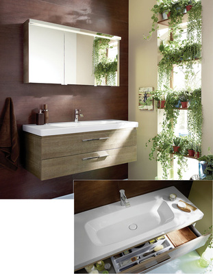Heute gilt der variable, maßflexible Bogenschlag vom Bad zum Wohnen mehr denn je: „RC40 Room Concept“ schafft über unzählige Systemelemente eine Gestaltungsfreiheit, die angrenzende Räume einbezieht. Das Maß der Dinge sind die persönlichen Vorstellungen der Badbewohner sowie der zur Verfügung stehende Raum. Dazu bietet das Programm eingepasste Lösungen, wie sie bisher nur vom Schreiner realisiert werden konnten.