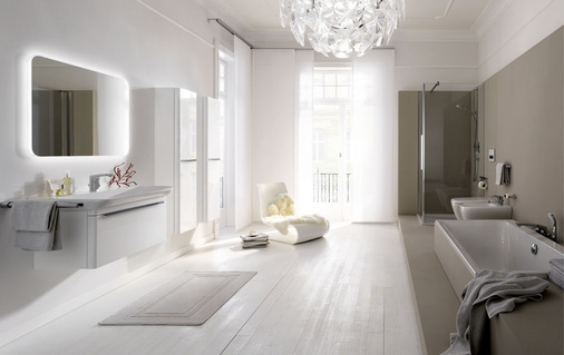 Die Serie umfasst ein umfangreiches Badmöbelprogramm. 47 cm tiefe Waschtischplatten, die bis zu einer Breite von 140cm verfügbar sind, können mit allen Waschtischvarianten sowie den Waschtischunterschränken kombiniert werden. Für wohnliches Ambiente sorgen Seiten- und Hochschränke sowie eine luxuriöse Acrylwanne.