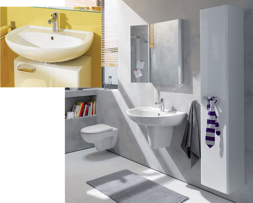 Die bewährte Badserie ermöglicht mit einer Vielzahl von Modellen und nützlichen Details praxisorientierte Gestaltungsmöglichkeiten für Familienbäder, Gäste-WCs und öffentlich-gewerbliche Sanitärräume. Ihr umfangreiches Badmöbelprogramm ist formal an die Keramikobjekte angepasst. Komplettiert wird die Serie durch WCs, Bidets, Urinale sowie Bade- und Duschwannen aus Acryl. Die Waschtische bieten zahlreiche funktionale Details wie großzügige Ablageflächen, eine leichte Aufkantung als reinigungsfreundlicher Wandanschluss und eine ergonomische Gestaltung des Beckenrandes.