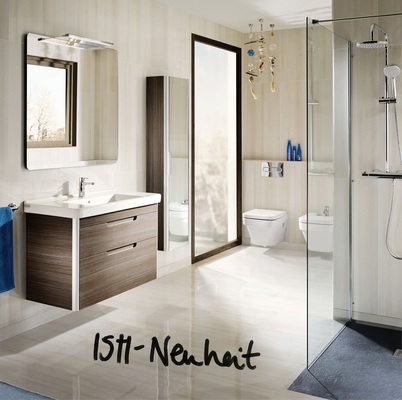 Zubehör: Acrylbadewanne Hall 180 x 80, 170 x 75 cm, Acryleckbadewanne 150 x 100 cm, Acrylduschwanne Hall 140/120 x 80 cm, 100 x 100 und 90 x 90 cm, WC-Sitz mit Absenkautomatik, Bidetabdeckung, Armaturen der Serie Targa, Accessoires der Serie Select