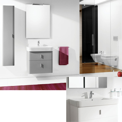 Badmöbel: Waschtisch 85 cm und Unterschrank Unik Meridian, Seitenschrank Unik Meridian