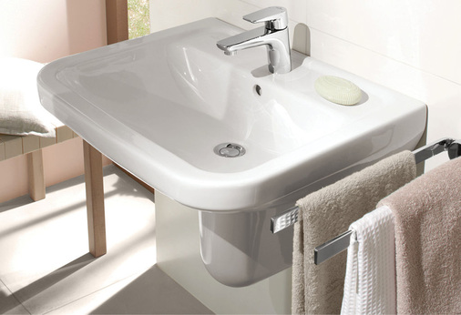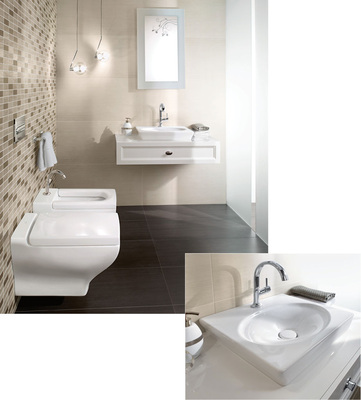 Villeroy & Boch hat das Gefühl für die „gute alte Zeit“ wiederentdeckt: Die 1999 eingeführte Sanitärkollektion Century greift die Formensprache vergangener Epochen auf und verbindet sie mit modernem Komfort. Die erste, im mittleren Preissegment angesiedelte Retro-Kollektion wird vor allem Kunden begeistern, die sich von klassischen Werten angesprochen fühlen. Der breite Waschtisch wird in mehreren Varianten, wahlweise mit Säule angeboten. Er sorgt mit seinen klassischen Konturen in Verbindung mit einer Dreilochbatterie, hier zu sehen mit der Villeroy-&-BochArmatur Square, für stilvolles Ambiente. Die Farbgebung ist klassisch: Kunden haben die Wahl zwischen den Weißtönen Weiß (Alpin) und Pergamon.