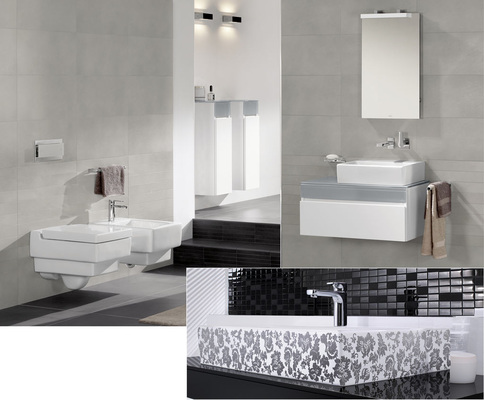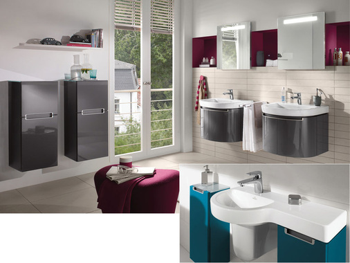 Beim modularen Möbelprogramm Frame to Frame stehen verschiedene Unterschrank- und Spiegelvarianten sowie Regalmodule mit Melamin-Oberfläche in den drei Trendfarben Satinweiß, Lagune und Eiche silber, jeweils mit farblich abgestimmten Kanten in 3D-Optik und Edelstahlmanschette zur Auswahl. Außerdem gibt es eine Universal-Waschtischplatte, die mit Handtuchhalter, Regal oder Auszug kombiniert werden kann. Mit dem auf der V&B-Homepage integrierten virtuellen Farb- und Dekorationskonfigurator O.novo style kann man Keramik und Möbeln die Dekore nach persönlichem Geschmack zuordnen und in Augenschein nehmen.