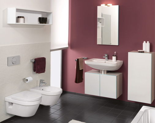 Sanitärkörper: Omnia Architectura: 70er-, 65er-, 60er- oder 55er-Waschtisch mit Säule, 60,5er-, 56er-Waschtisch Compact mit Säule, 55er-Vorbauwaschtisch, 50,5er-, 53er-, 46er-, 36,5er-Handwaschbecken Compact, Eck-Handwaschbecken Compact 41,5 cm, Bidet 37 x 56 cm, Bidet Compact 35,5 x 48 cm, WWC-Tiefspülklosett 37 x 56 cm, Tiefspülklosett Compact 35,5 x 48 cm, WWC-Tiefspülklosett Vita 37 x 71 cm, bodenstehendes WC-Tiefspülklosett 37 x 56 cm, bodenstehendes WC-Tiefspülklosett 37 x 56 cm, Tiefspülklosett für Kombination 37 x 69 cm mit Vario-Abflussbogen, Absaug-Urinal 35,5 x 62 x 38,5 cm/35,5 x 62 x 38,5 cm/35,5 x 62 x 38,5 cm, Tiefspülklosett mit Green Gain