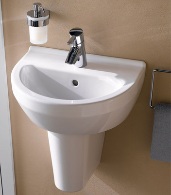 Sanitärkörper: Waschtisch 60 cm, mit Standsäule in Flat- und Oval-Optik, Aufsatzwaschtische, passende Wand-WCs, Wandbidet