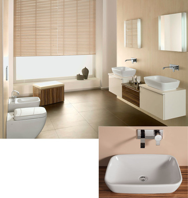 Sanitärkörper: Handwaschbecken 40 cm, Waschtisch 50, 60, 80 und 100 cm, Waschtisch kompakt asymmetrisch 50 cm, Aufsatz- und Unterbau-Waschtisch 40, 50, 60, 80 cm, Monoblock-Waschtisch 50 x 40 x 85 cm, Wand-WC, Wand-WC ohne Spülrand, Wandbidet, Halbsäule, Standsäule
