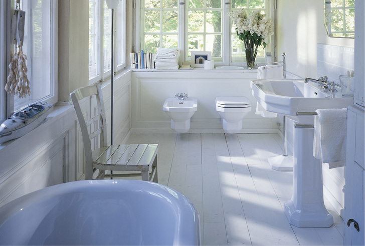 Bidet und WC als Stand- und Wandversion gehören selbstverständlich ebenfalls zum Programm. Das WC spült wasser- und kostensparend mit sechs Litern. Heute passt 1930 im Sinne des aktuellen Landhausstils besser denn je in unsere Zeit. Ein wahrer Klassiker – modern und zeitlos.