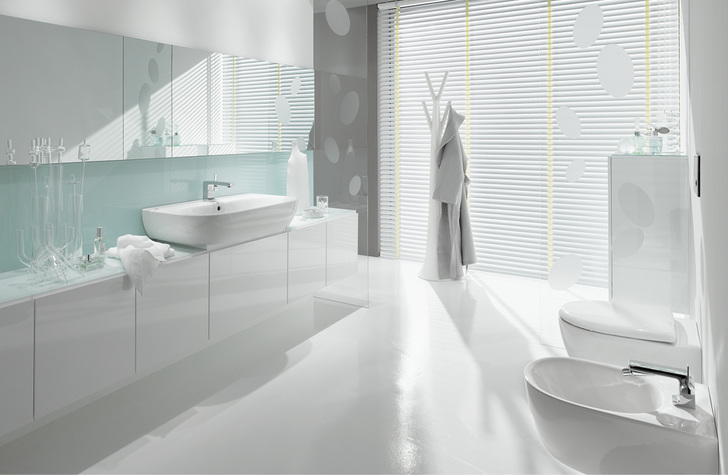 Keramikkörper: Waschtisch 60, 65, 70, 80 cm, Halbsäule, Standsäule, keramische Ablegeplatte, Handwaschbecken 36, 45 cm, Eck-Handwaschbecken 33,7 cm, Tiefspül-WC wandhängend 49 cm Ausladung, spülrandloses Wand-WC Rimfree, Bidet wandhängend