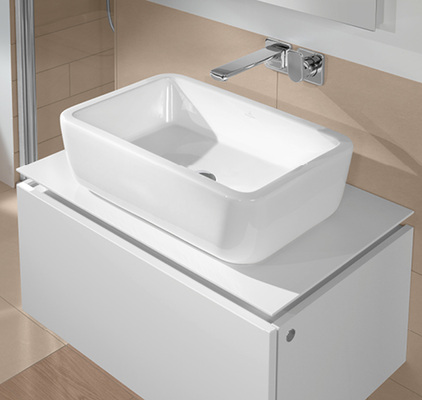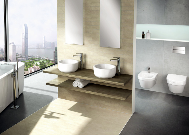 Architectura ist ein Systemkonzept von Villeroy & Boch. Nach einem Baukastenprinzip können Waschtische in allen Einbauvarianten mit passenden WCs und Urinalen ausgesucht werden. Die geometrischen Grundformen Kreis, Ellipse und Rechteck ermöglichen dem Planer größtmögliche Freiheit bei der Raumgestaltung.