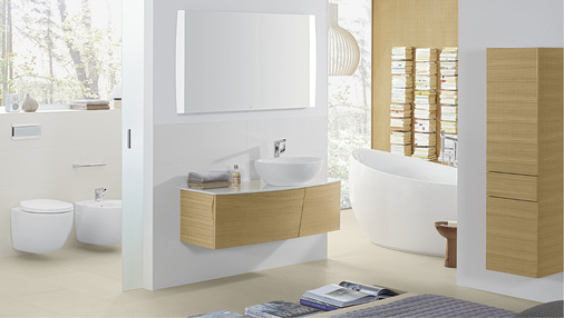 Im Zusammenspiel mit der Quaryl-Badewanne und dem neuen, filigranen WC-Sitz ergibt sich ein harmonisches Bild natürlicher Ästhetik. Neue Möbel runden die Kollektion ab: Gebogene Fronten schmiegen sich an die natürliche Form der Waschtische. Die Materialien wie Echtholzfurnier in Pure Oak und Dark Oak unterstreichen den natürlichen Gesamteindruck. Modern reduziert wirkt Glossy White Lack.