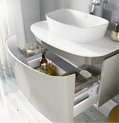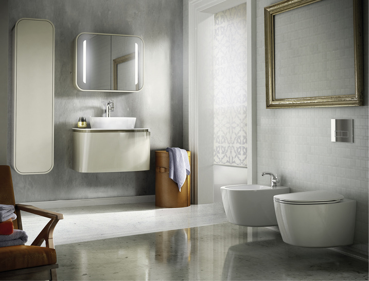 Bei der luxuriösen Badserie Dea treffen ausgesuchte Materialien auf weiche, fließende Rundungen. Eine große Auswahl an wohlproportionierter, unverwechselbar gestalteter Keramik gehört zur Linie, darunter Waschschalen, Waschtische, WCs mit Softclosing-Sitz, Bidets und Badewannen in zeitgenössischer Optik. Die opulente freistehende Badewanne ist der Blickfang in jedem Badezimmer. Auch der Säulenwaschtisch setzt mit seinem skulpturalen Erscheinungsbild stilsicher moderne Akzente. Alle Schränke sowie der Möbelwaschtisch-Unterschrank bieten viel Stauraum. Dieser wurde abgeschrägt gestaltet, damit man ganz nah und ungehindert an das Becken treten kann. Gestaltet wurde die Kollektion von dem Briten Dick Powell, Mitbegründer der bekannten Designagentur Seymourpowell aus London.