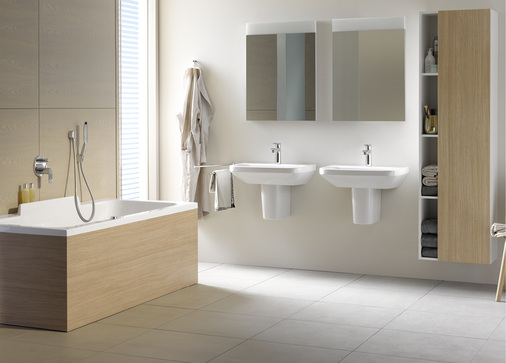 Die individuellen Ansprüche stellen hohe Anforderungen an die Flexibilität einer Badeinrichtung. Die Zurückhaltung in der Formgebung von DuraStyle eröffnet viel Gestaltungsfreiheit. Die Nachfolgeserie von Duraplus wartet mit einem umfangreichen Programm an Sanitärkeramik, Badmöbeln und Wannen auf, das sowohl für den privaten Bereich als auch fürs Objektgeschäft konzipiert wurde. Charakteristisch sind der schmale, filigrane Beckenrand und die deutlich zurückspringende, angeschrägte Außenkante. Waschtisch und WC wirken dadurch sehr schlank und zurückhaltend.