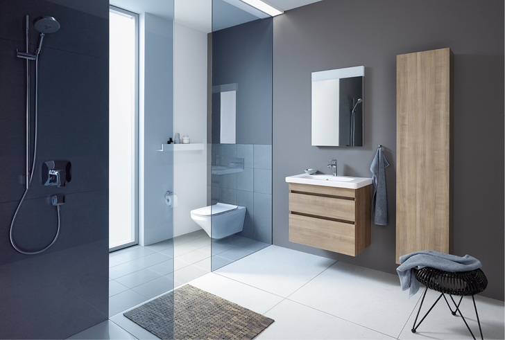 Zurückhaltende Formgebung gepaart mit einem hohen Maß an Nutzen, Komfort und Funktionalität inspiriert bei DuraStyle zu maximaler Gestaltungsfreiheit. Im Bereich Project überzeugt das intelligente Sortiment mit aufeinander abgestimmten Produkten für jeden Einsatzzweck und alle architektonischen Gegebenheiten. Im Privatbereich bietet DuraStyle eine große Programmvielfalt für individuelle Kombinationsmöglichkeiten, flexibel einsetzbar und passend für jedes Ambiente, jedes Platzangebot und jede Geschmacksrichtung. Die vom Designer-Duo Matteo Thun und Antonio Rodriguez realisierte Liebe zum Detail schlägt sich in feinen formalen Details wie dem schmalen Beckenrand und der sich nach unten verjüngenden Außenkante nieder. Die komfortablen Dusch-WC-Sitz-Modelle SensoWash fügen sich perfekt in puristische DuraStyle-Ensembles ein. Besonders hygienische Rimless-Varianten verbinden dabei intensive Reinigungswirkung mit sparsamem Wasserverbrauch. Die flexible Komplettserie umfasst neben Sanitärkeramik Badmöbel in 14 verschiedenen Oberflächen, die standardisierte Lösungen für jede räumliche Situation unterstützen. So unterschiedliche Finish-Optionen wie Amerikanischer Nussbaum, Basalt Matt oder Weiß Hochglanz bilden dabei differenzierte Stilwelten ab. Die Armaturenlinie B.1 passt für jede einzelne davon.