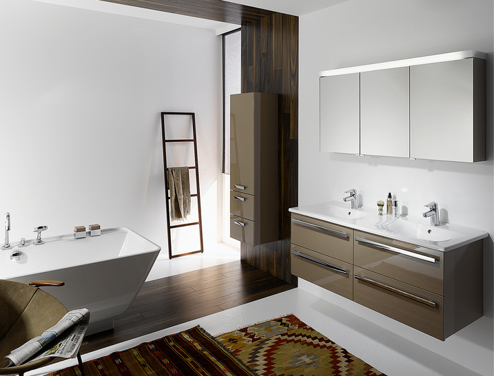 Badmöbel: Waschtischunterschränke mit Auszügen, Spiegelschränke und Leuchtspiegel, halbhohe Schränke, Hochschränke, Schränke grifflos oder mit Stangengriff, Griffleiste