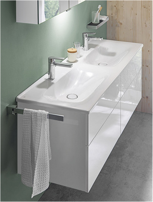 Funktionalität und Qualität sind auch bei Einsteigerprogrammen ein Muss, ebenso das Überdauern kurzlebiger Trends. Diese Ansprüche meistert die burgbad-Serie Essento mit einem textilen Bezug: So wirken die Keramik-Waschbecken, nicht zuletzt auch aufgrund ihrer auf das technisch notwendige Minimum reduzierten Materialstärke, wie ein weiches Tuch. Es formt sich zu großzügigen Mulden sowie komfortablen Ablageflächen und spricht geradezu eine Einladung aus, mit schnörkellosen, geradlinigen Schränken kombiniert zu werden.