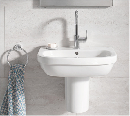 Keramikkörper: Möbelwaschtisch 80 und 100 cm, Waschtische 55, 60, 65 cm, Hand- und Minihandwaschbecken in 45 und 37 cm, Aufsatzwaschtisch 60 cm, Unterbauwaschtisch 55 cm, Säule und Halbsäule für Waschtisch, Halbsäule für Handwaschbecken 45 cm, Wand-Tiefspül-WC und Wand-Tiefspül-WC kompakt mit 490 mm Ausladung, Stand-Tiefspül-WC, Stand-WC-Kombinationen mit Aufsatzspülkasten, Wand- und Standbidet