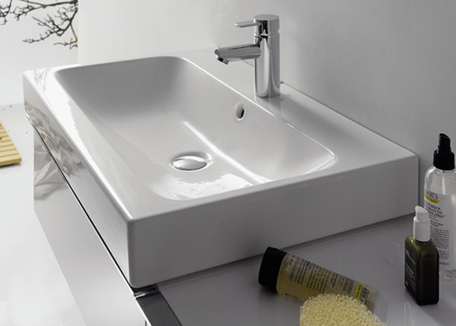 Keramikkörper: Waschtische 60, 75, 90 und 120 cm, Doppelwaschtisch 120 cm, asymmetrische Waschtische mit Dekoschale in Rechts- und Links-Ausführung, Aufsatzwaschtische, wandhängendes Tiefspül-WC, spülrandloses Wand-WC Rimfree, bodenstehende WC-Kombi Rimfree, WC-Sitz mit Deckel, Bidet