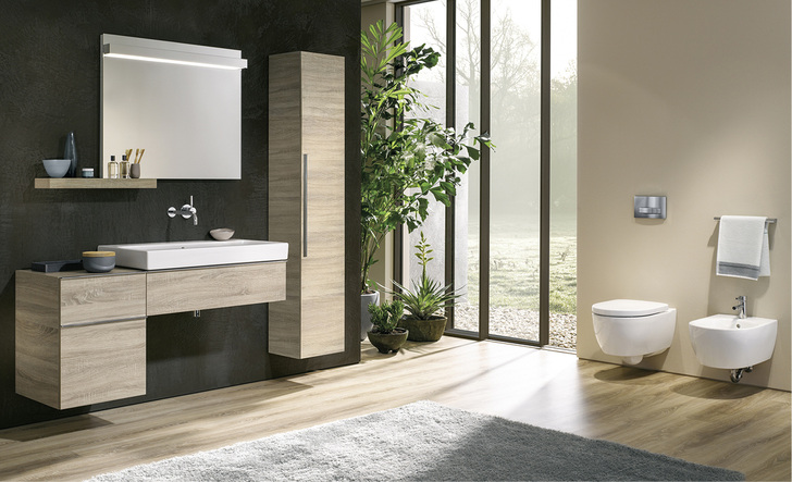 Die WCs und das Bidet orientieren sich an der organisch fließenden Innenkontur der Waschtische und setzen damit einen Spannungspunkt zur strengen Außengeometrie der Becken. Das spülrandlose WC hat konstruktionsbedingte Vorteile: Hohlräume, in denen Ablagerungen und Schmutznester entstehen können, werden vermieden. Ein patentierter Spülverteiler führt das Wasser symmetrisch in das Becken ab und gewährleistet eine einwandfreie Aus- und Flächenspülung.